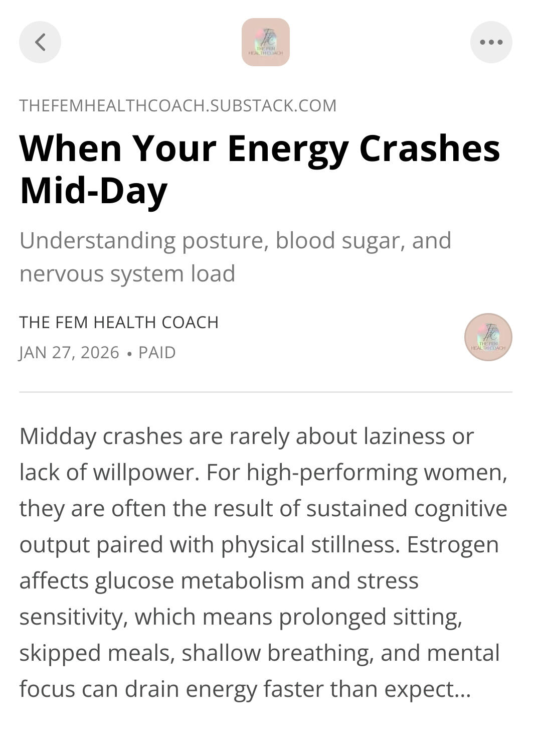 But subtly wired in a way that never fully settles.Your mind works beautifully. Your productivity is intact. Your life, from the outside, appears balanced and intentional.But internally there is a quiet tension that lingers beneath it all. Even after the yoga class. Even after the weekend off. Even after the vacation you were certain would reset everything.The Fem Health Community is built around real-time support specifically tailored to the chemistry, physiology and biology of ambitious women managing it all. We work with women tired of constant output, not because they lack discipline or ambition, but because their bodies have been carrying too much without nervous system and biological regulation.